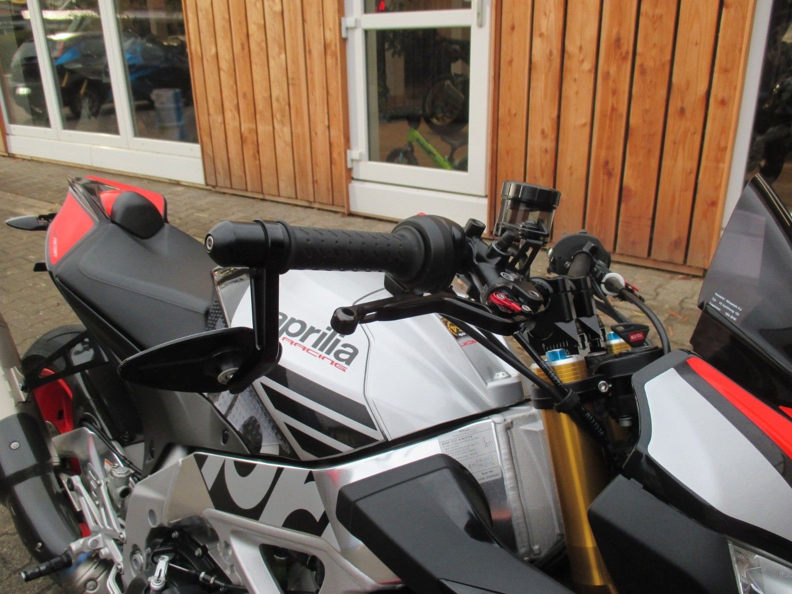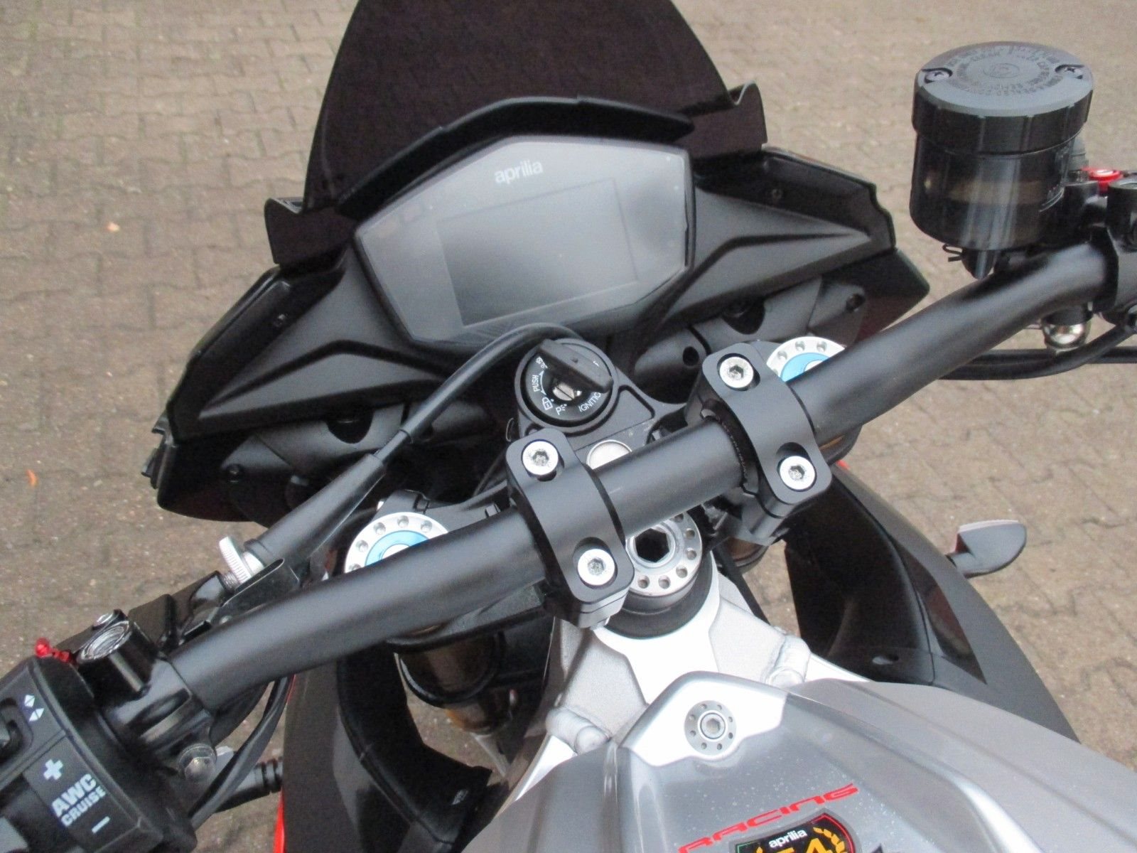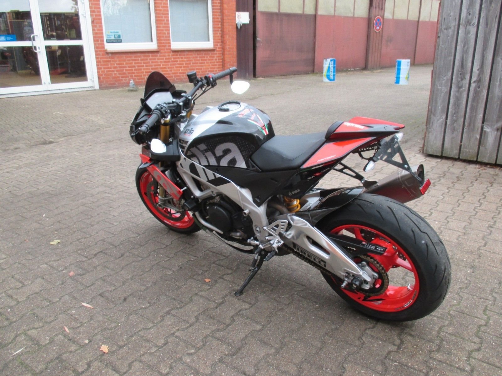 mit Akrapovic Auspuff, kurzer Kennzeichenhalter, Lenkererhöhung, Lenkerendenspiegel, Carbon Heck Fender, einstellbare Hebel, Puig Windschild,