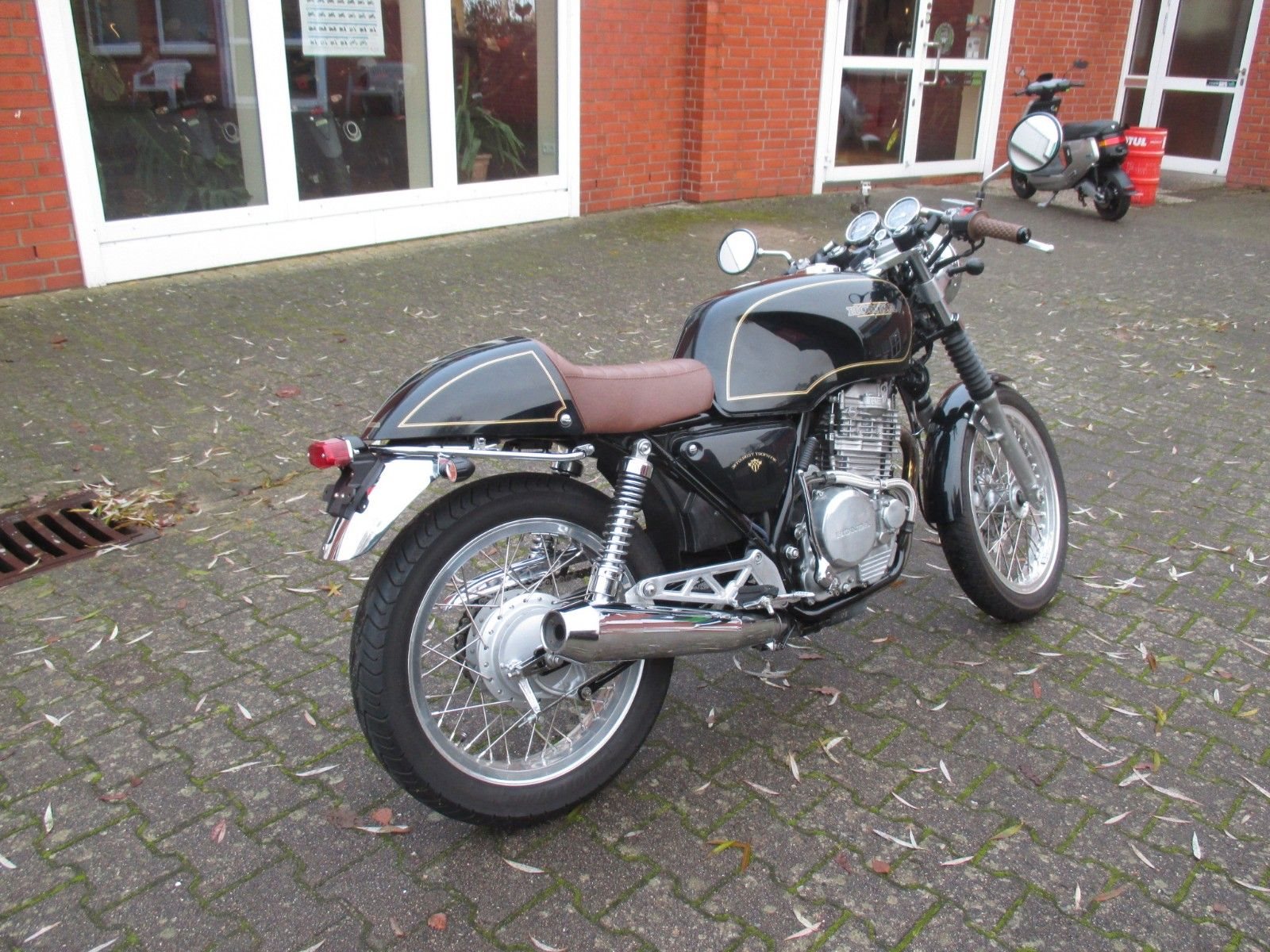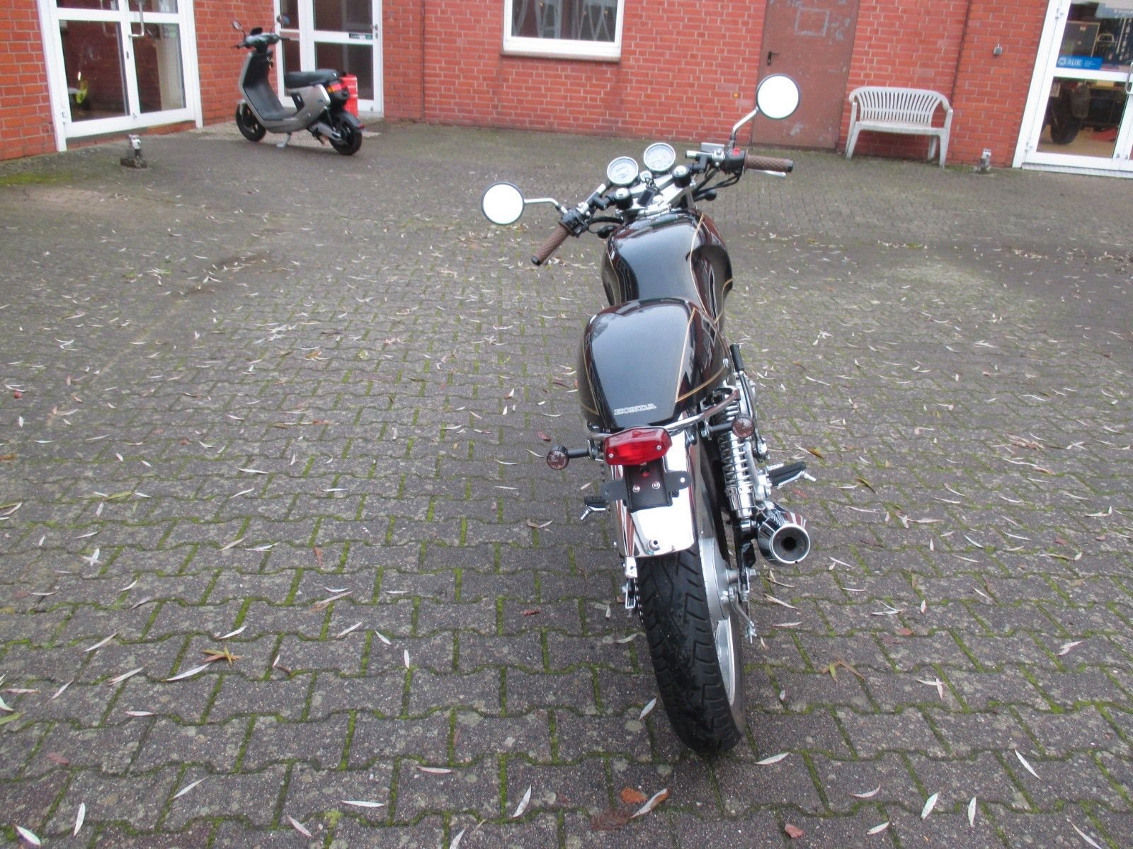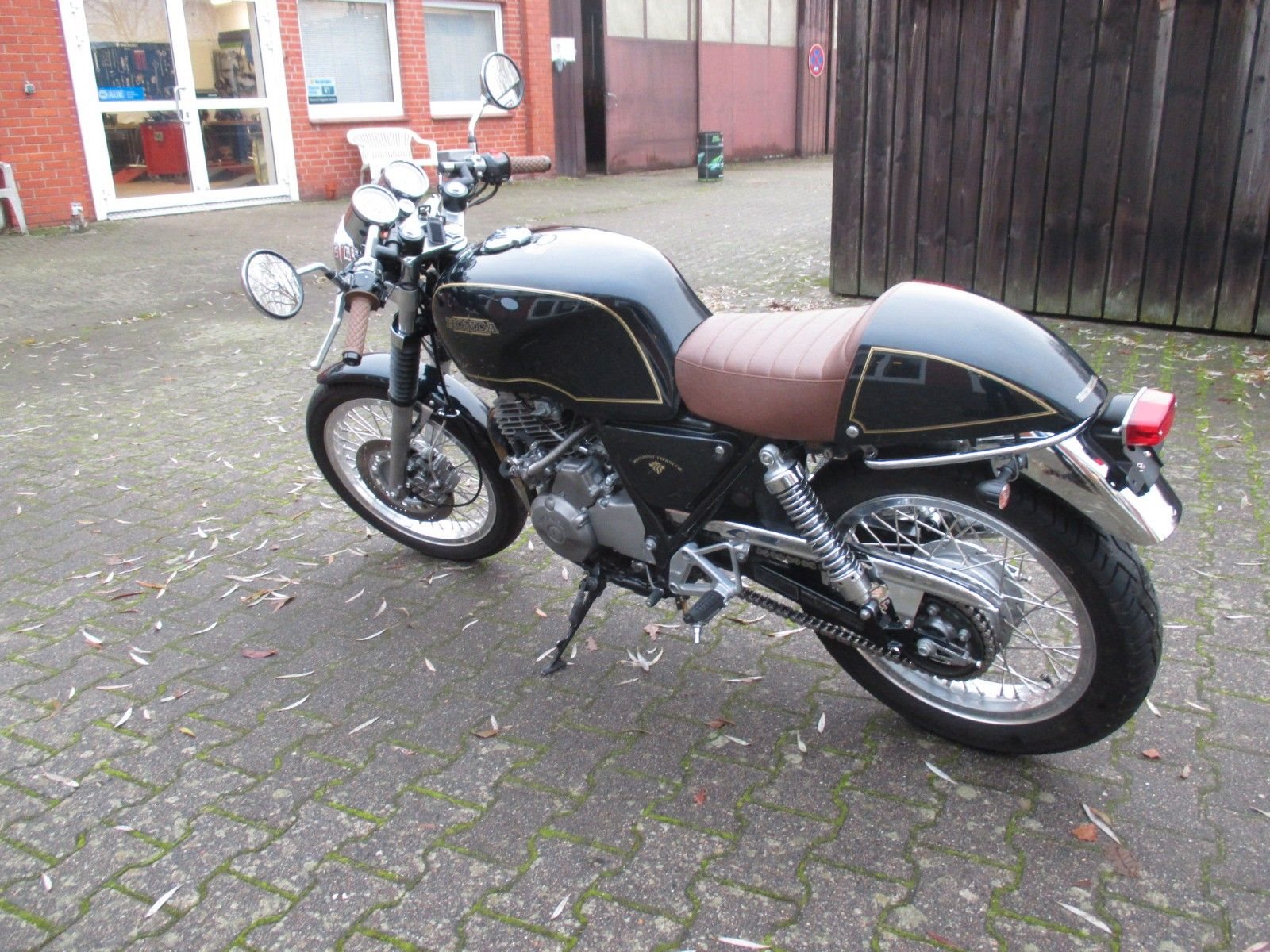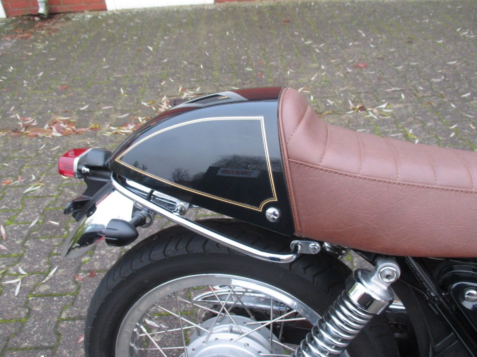 schöner Umbau, Led Blinker, Rücklicht, Gabelstummel, braune Sitzbank und Griffgummis,