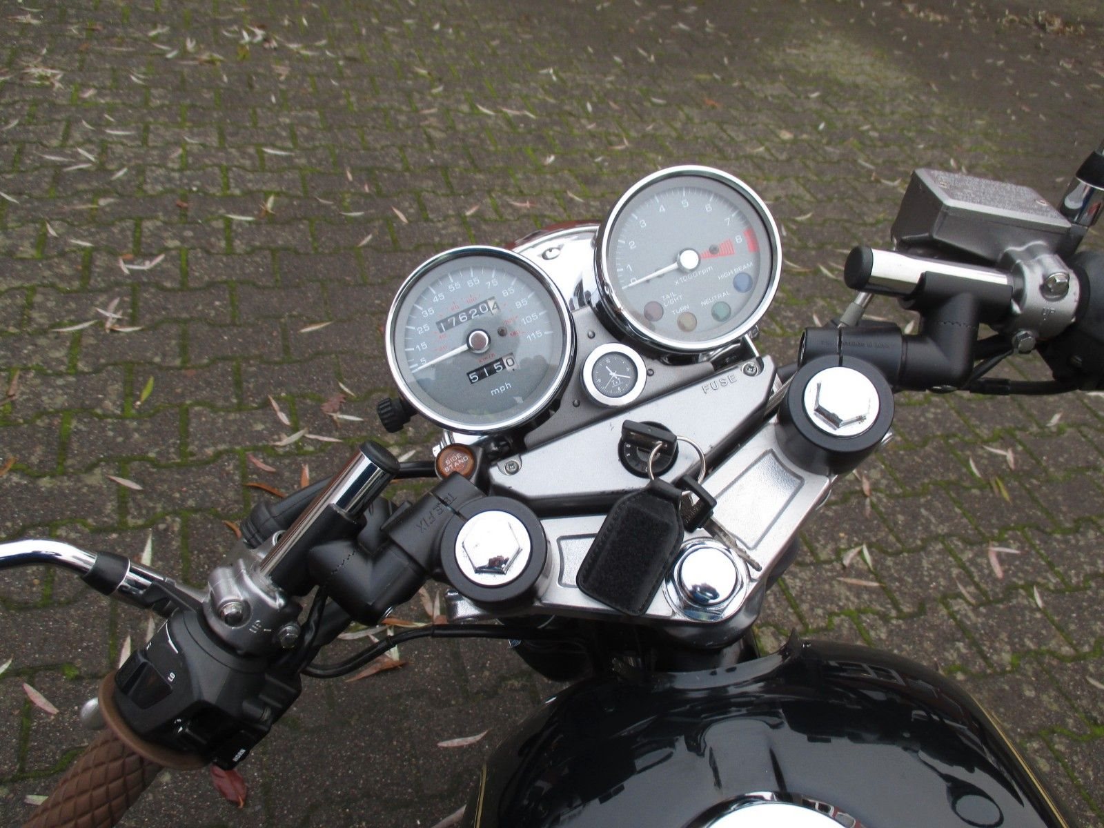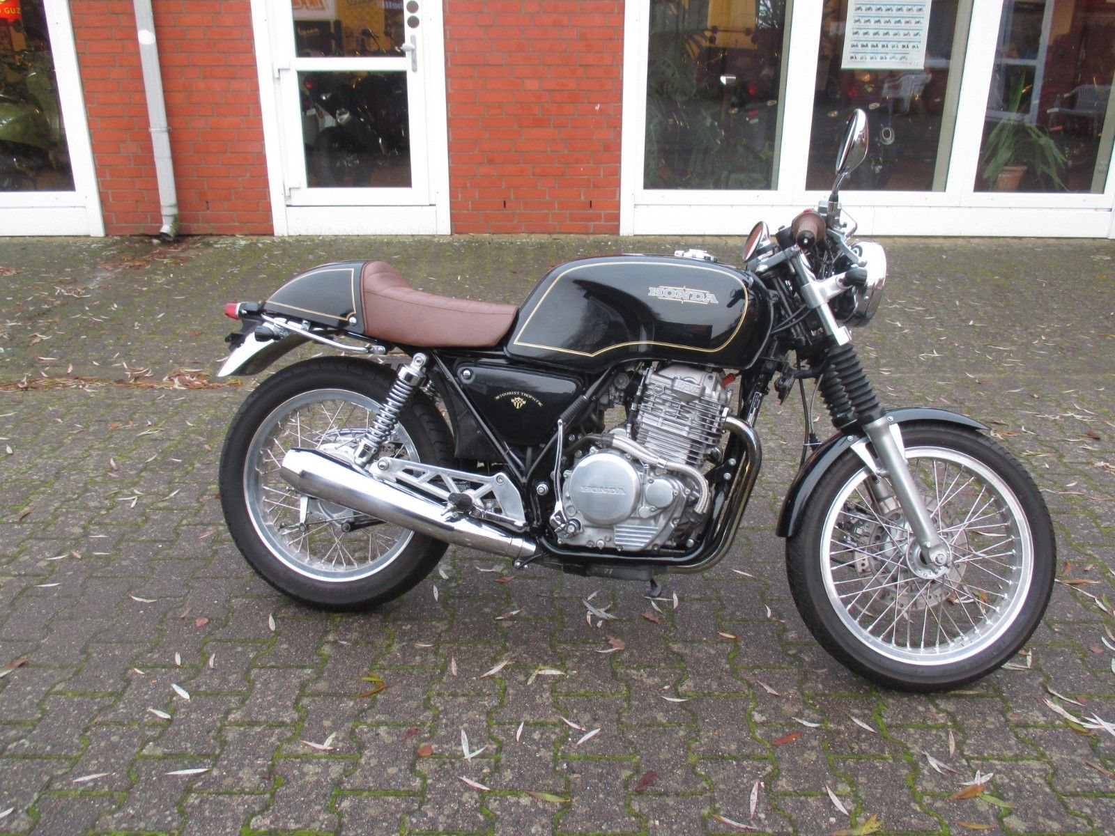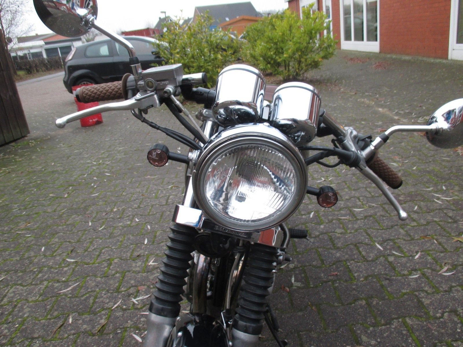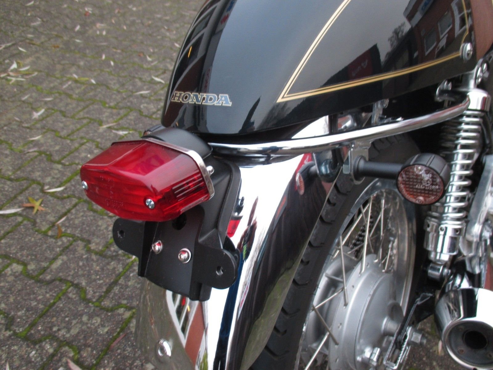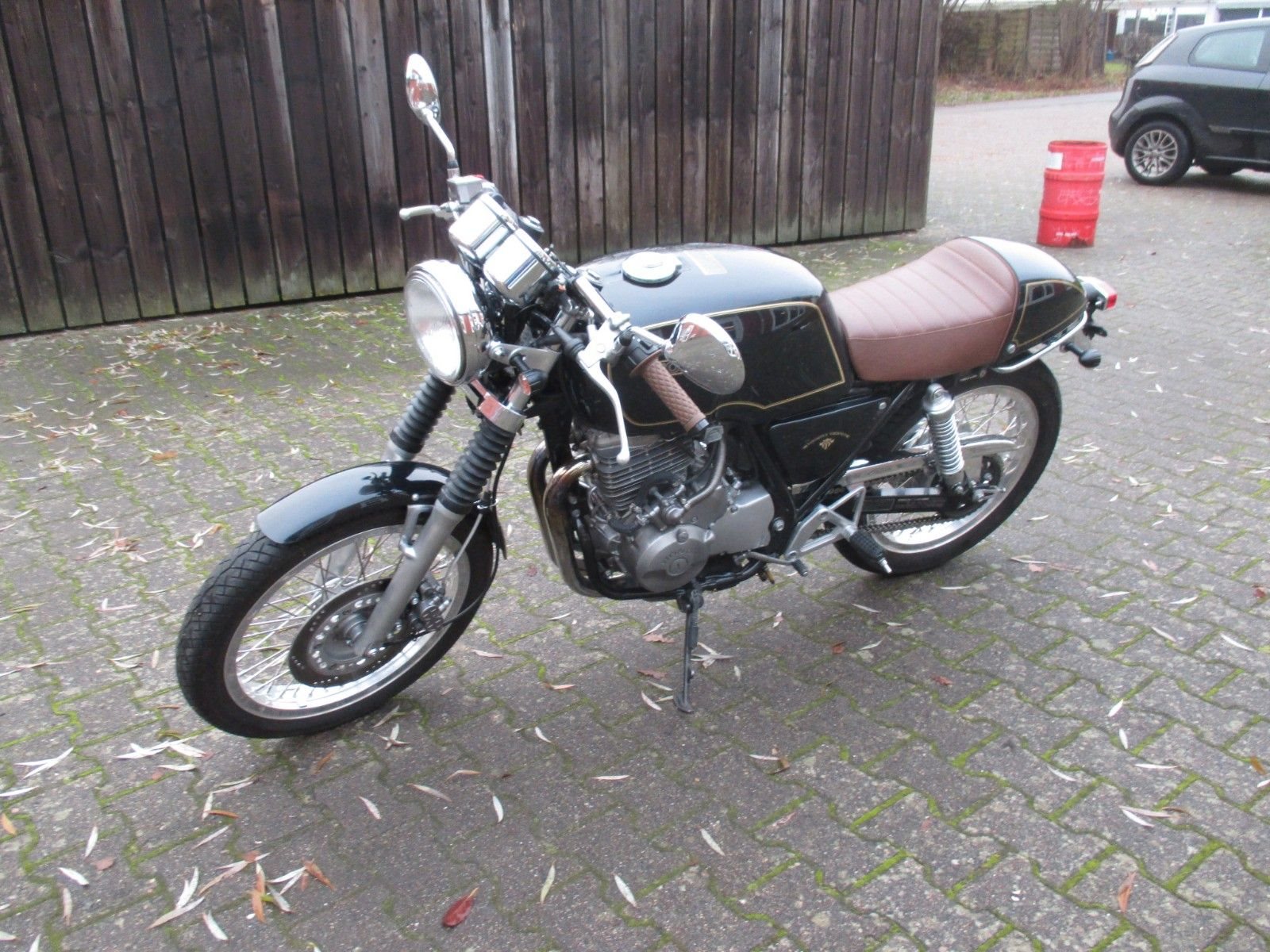 schöner Umbau, Led Blinker, Rücklicht, Gabelstummel, braune Sitzbank und Griffgummis,